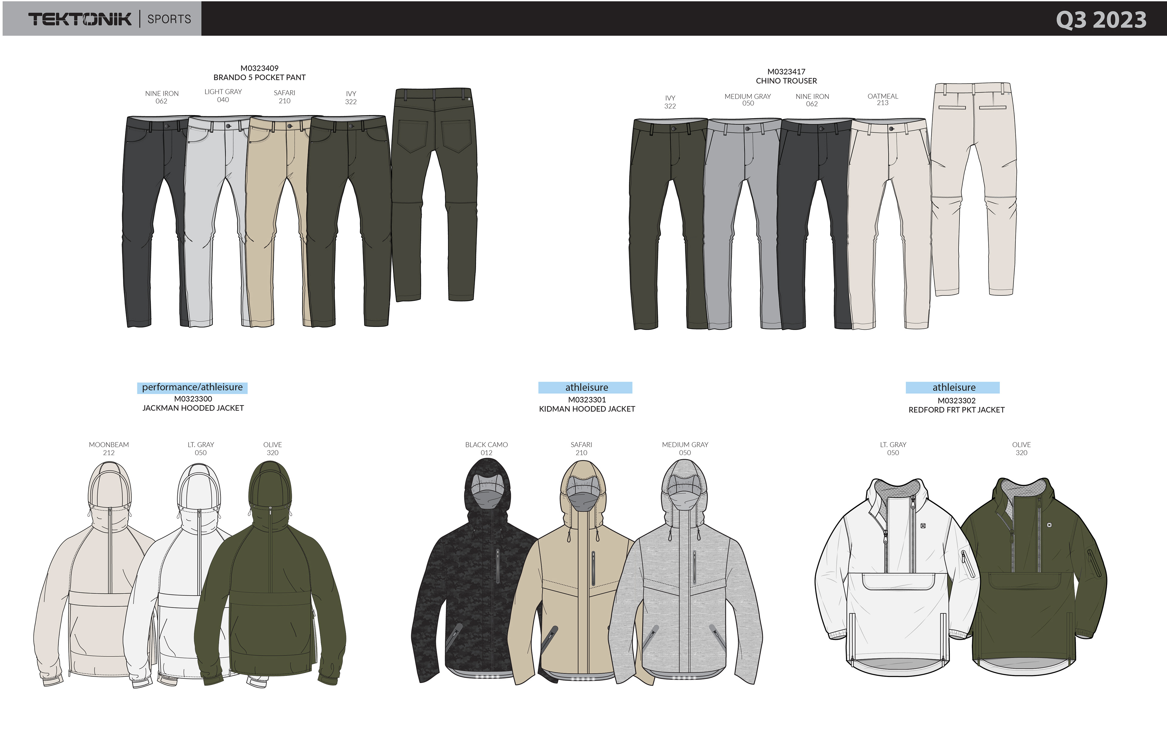 Men's athleisure collection for Cintex International LLC. Designed men's activewear and athleisure in all categories, tops, bottoms, jackets, cut and sew, and wovens.