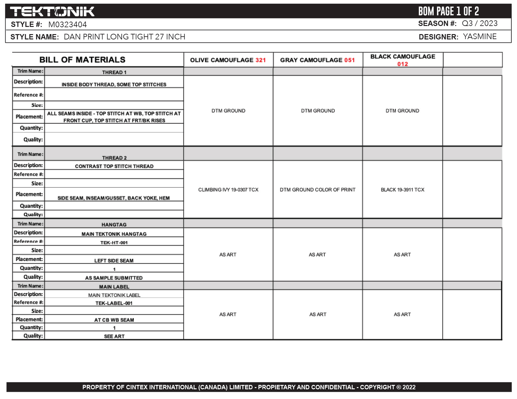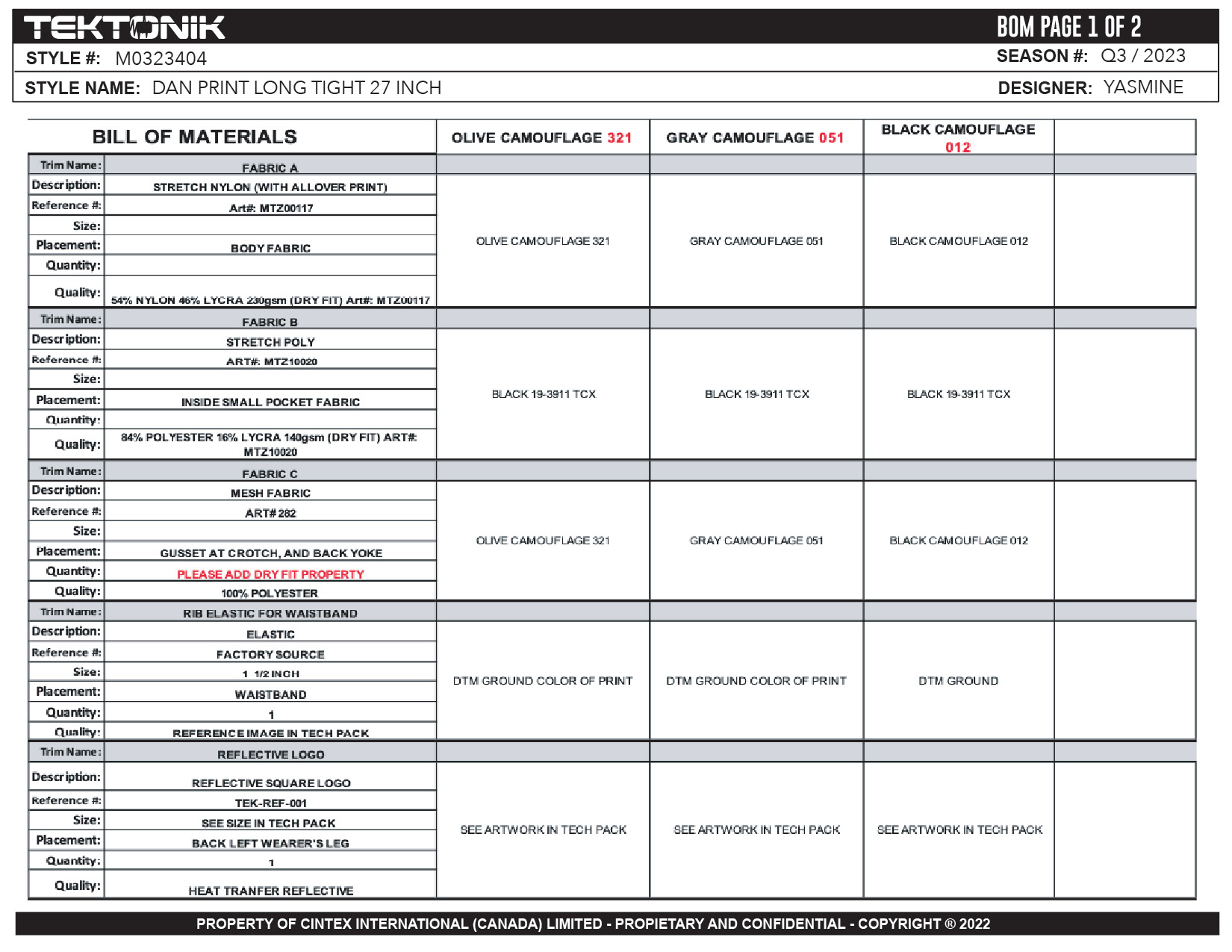 TECH PACKS & TRIMS